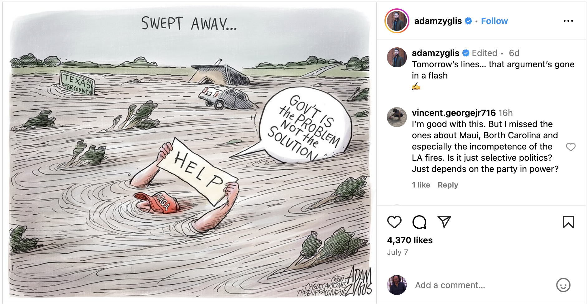 The Texas Flood cartoon is on the artist’s Instagram page.