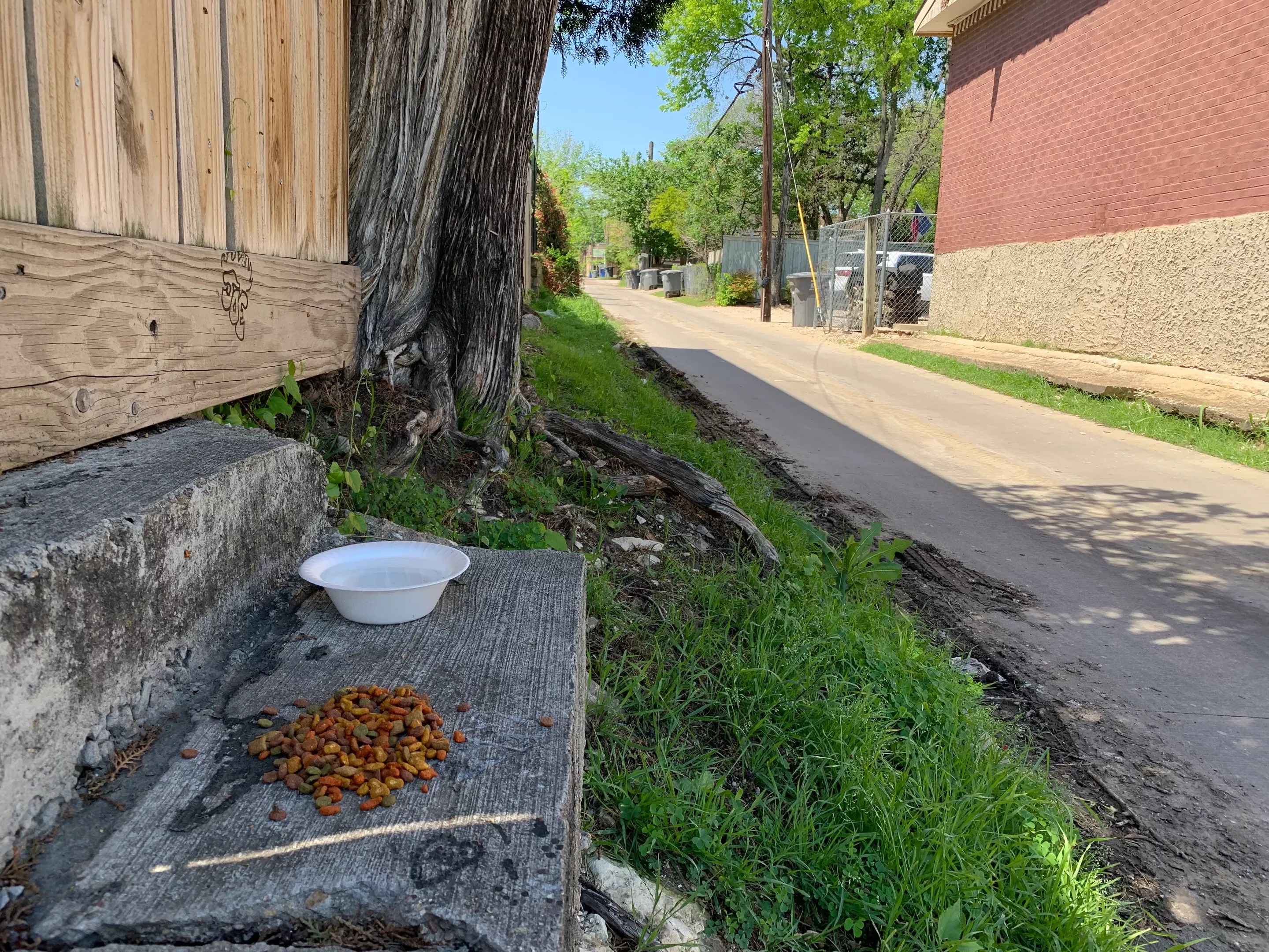 Piles of cat food litter the alleys of Oak Cliff.
