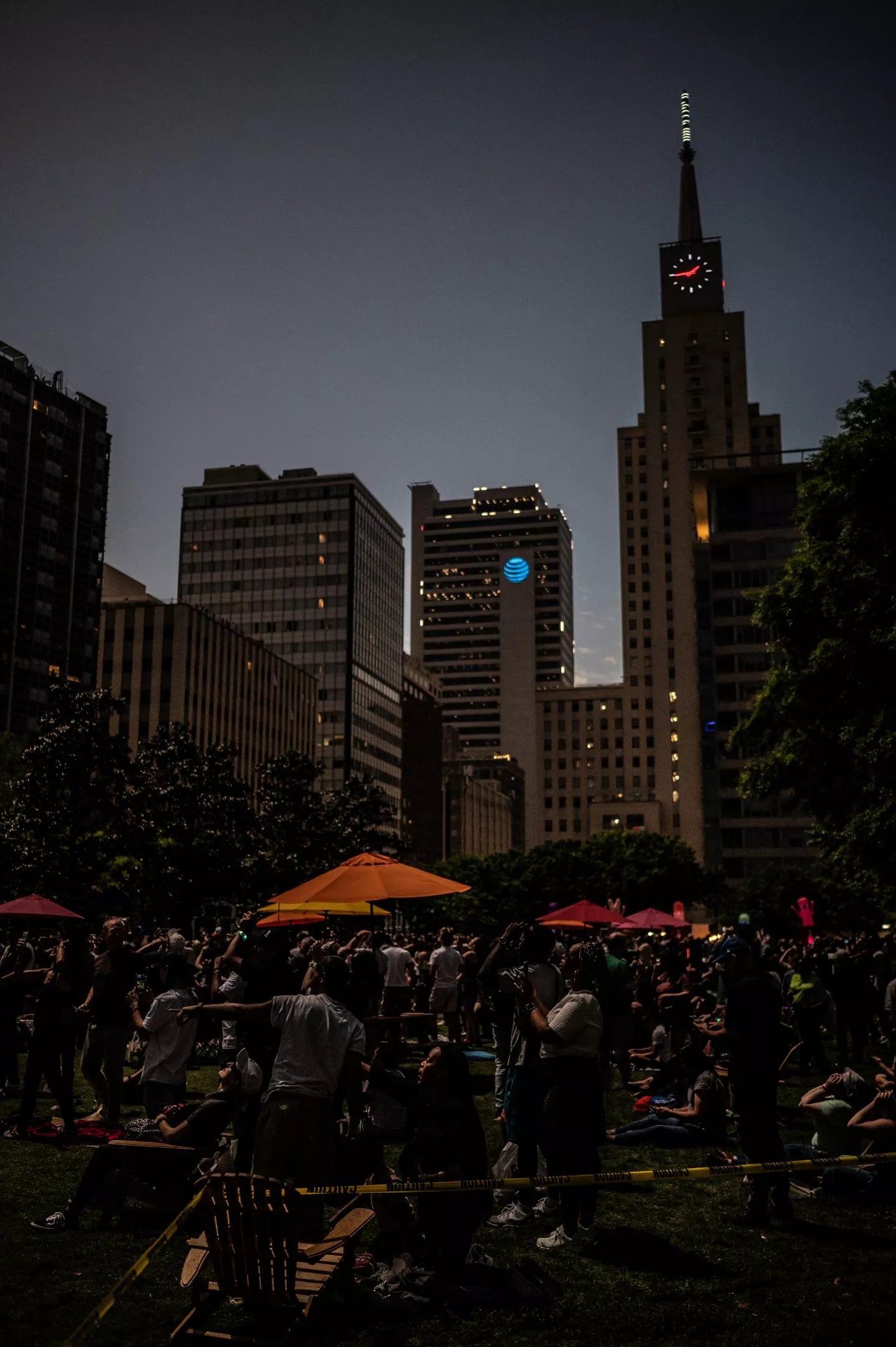 Main Street Garden Park in downtown Dallas was packed with people from Houston, Los Angeles and elsewhere who had arrived early to throw a blanket down and commune with other folks in town to enjoy something that would not happen for some 300 more years around these parts.