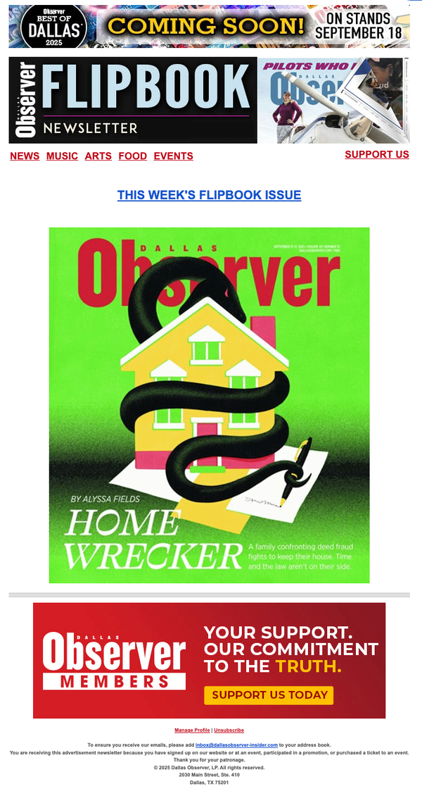 All the news that fits…and more. Dallas Observer‘s editor-in-chief offers a members-only look at what’s happening at the publication, including important stories published on dallasobserver.com and others that are yet to come.