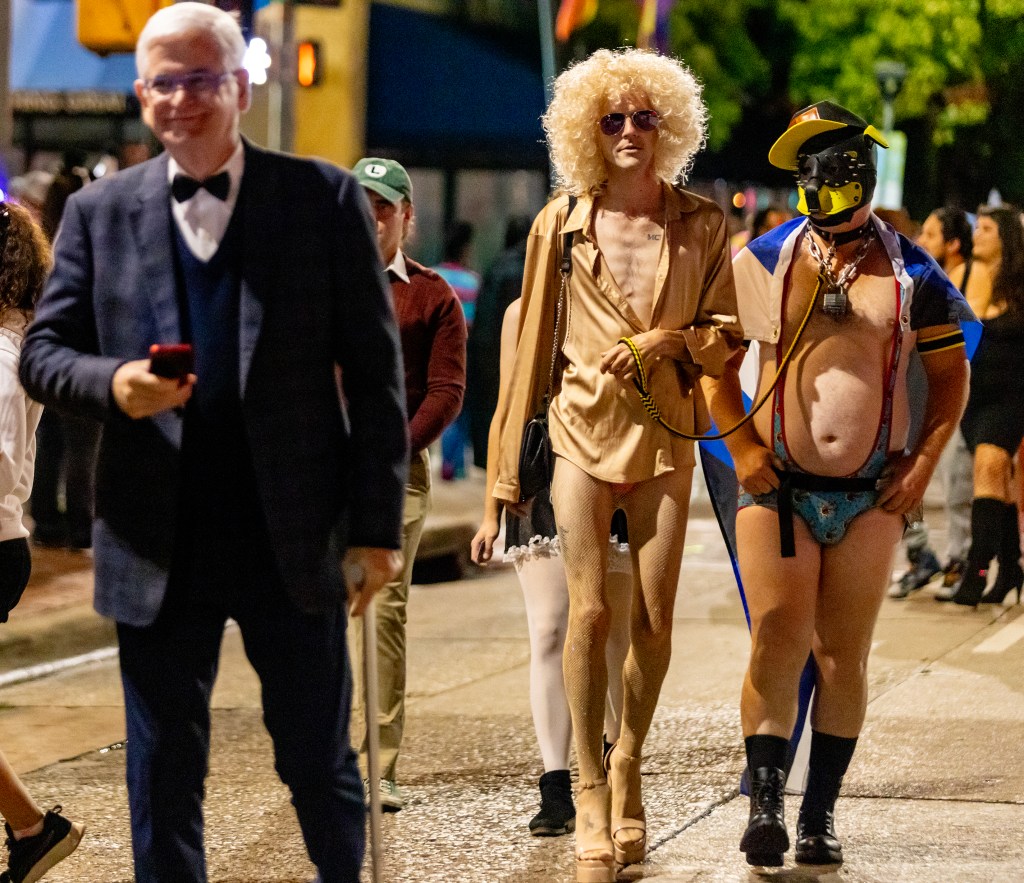 Hosted by Station 4, this year’s event welcomed looks from ages 18+ to the 3900 block of Cedar Springs Rd. for a night of drinks, dancing and dress-up. Street-side vendors and local haunts like Lava Lounge and The Round-Up Saloon provided plenty of booze and Halloween spirit for attendees with live music, drag performances and more. However, the real sources of entertainment were the costumed guests themselves.