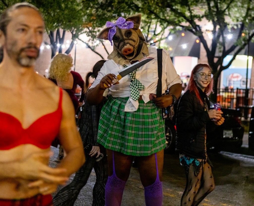 Whether fully dressed up in ornate headpieces and lights or dressed all the way down to bondage mesh and bunny ears, almost every attendee went all out to celebrate the season of the witch. Throughout the party, masqueraders strut their spooky stuff down the block’s famous Halloween Costume Runway, where they showed off their ensembles. Meanwhile, more modest souls lingered on the sidewalk, sipping their potions and applauding from the shadows.